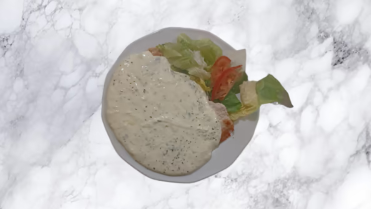 Roston sült jércemell(salátaágyon, sajtmártással)